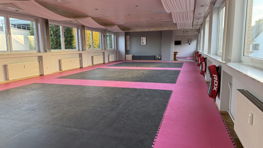 Unsere Schule in Borken bietet auf 255 m² hervorragend ausgestattete Räume mit einer 115 m² großen mattierten Bodenkampffläche.